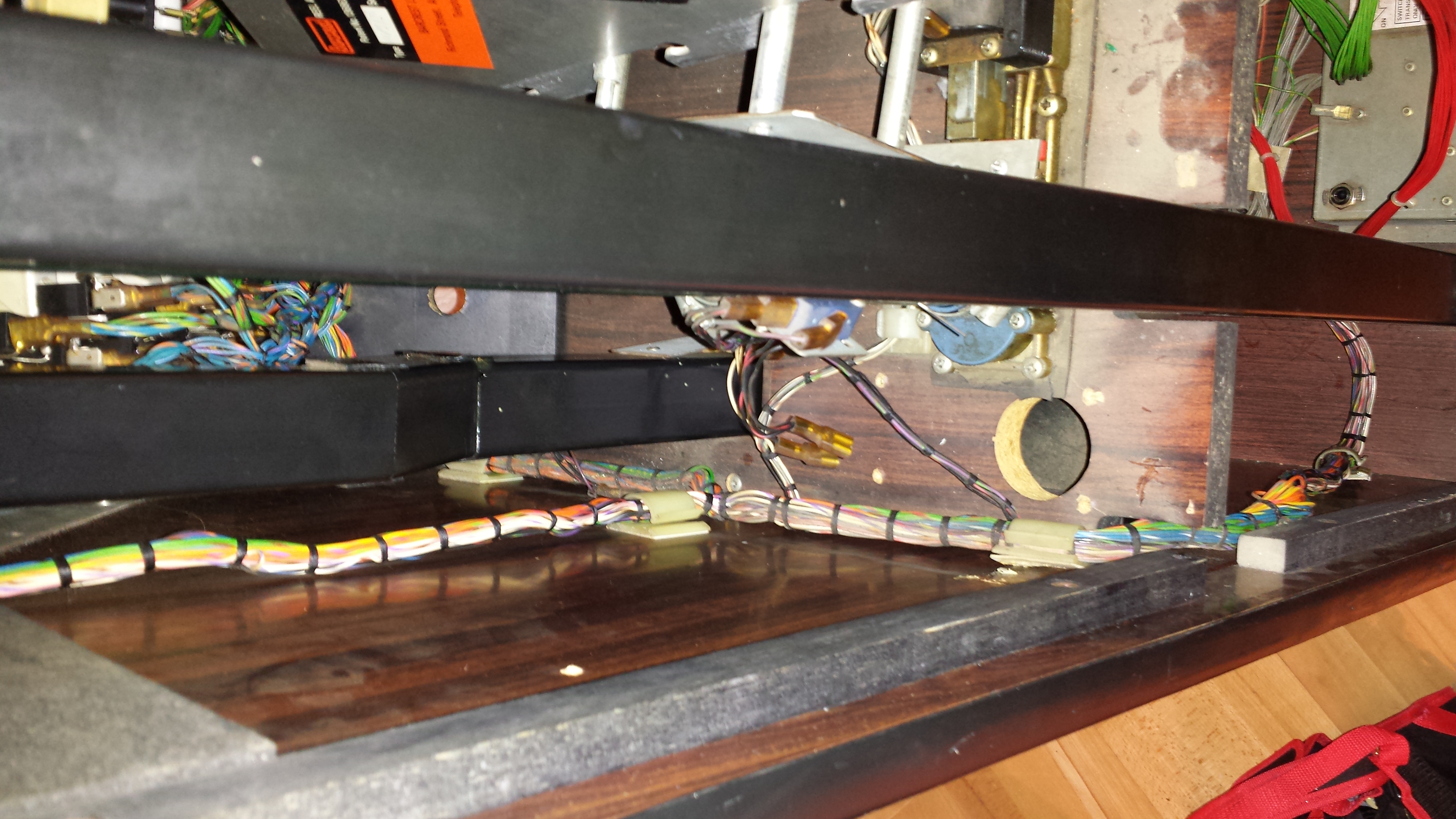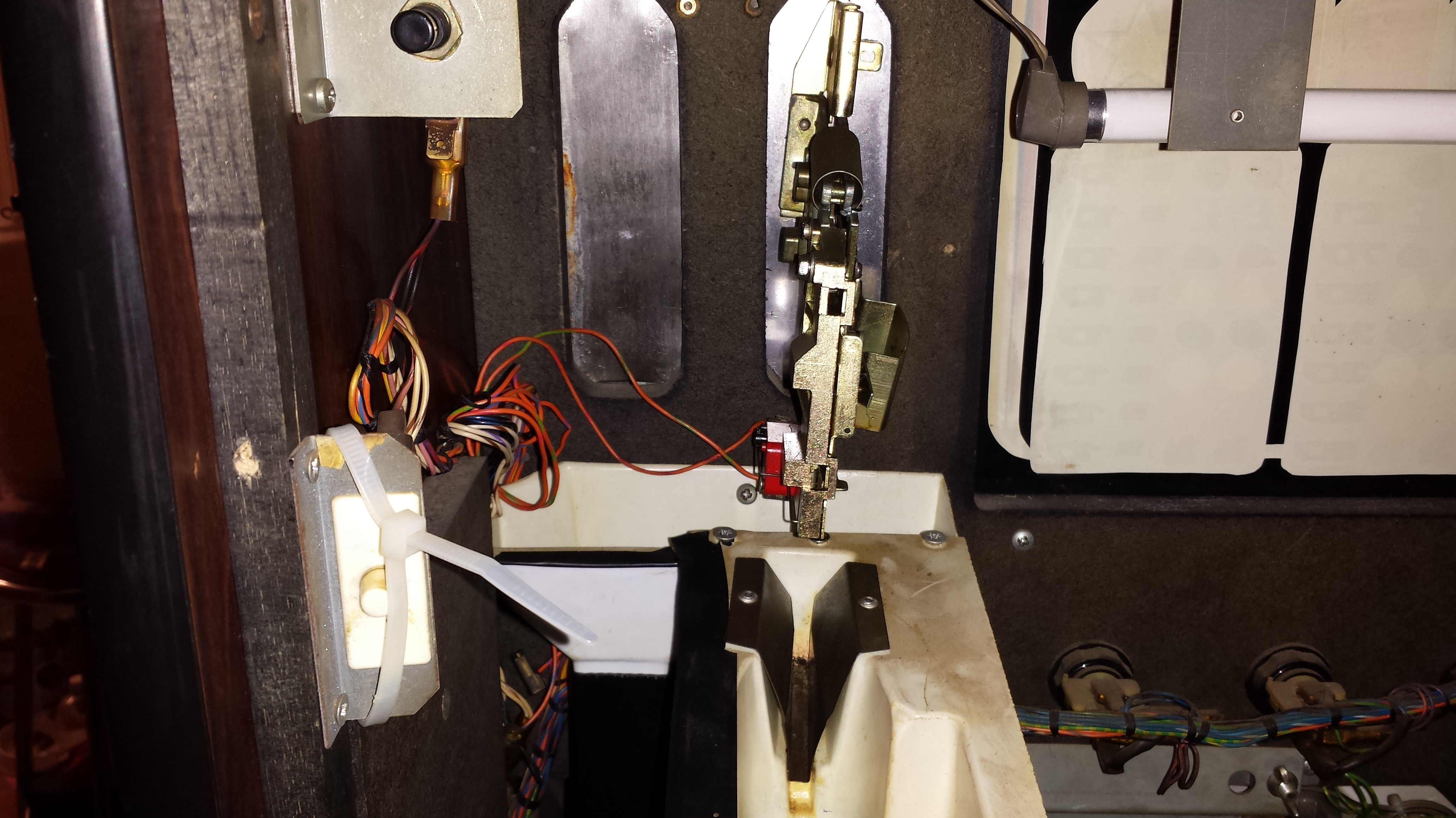 Someone had really gone to town on the cabinet and had removed the S10 mechs for the 50p and 20p play and the token mech, tube and token slide. All this had to be replaced from a box of donor parts that I had in my shed.