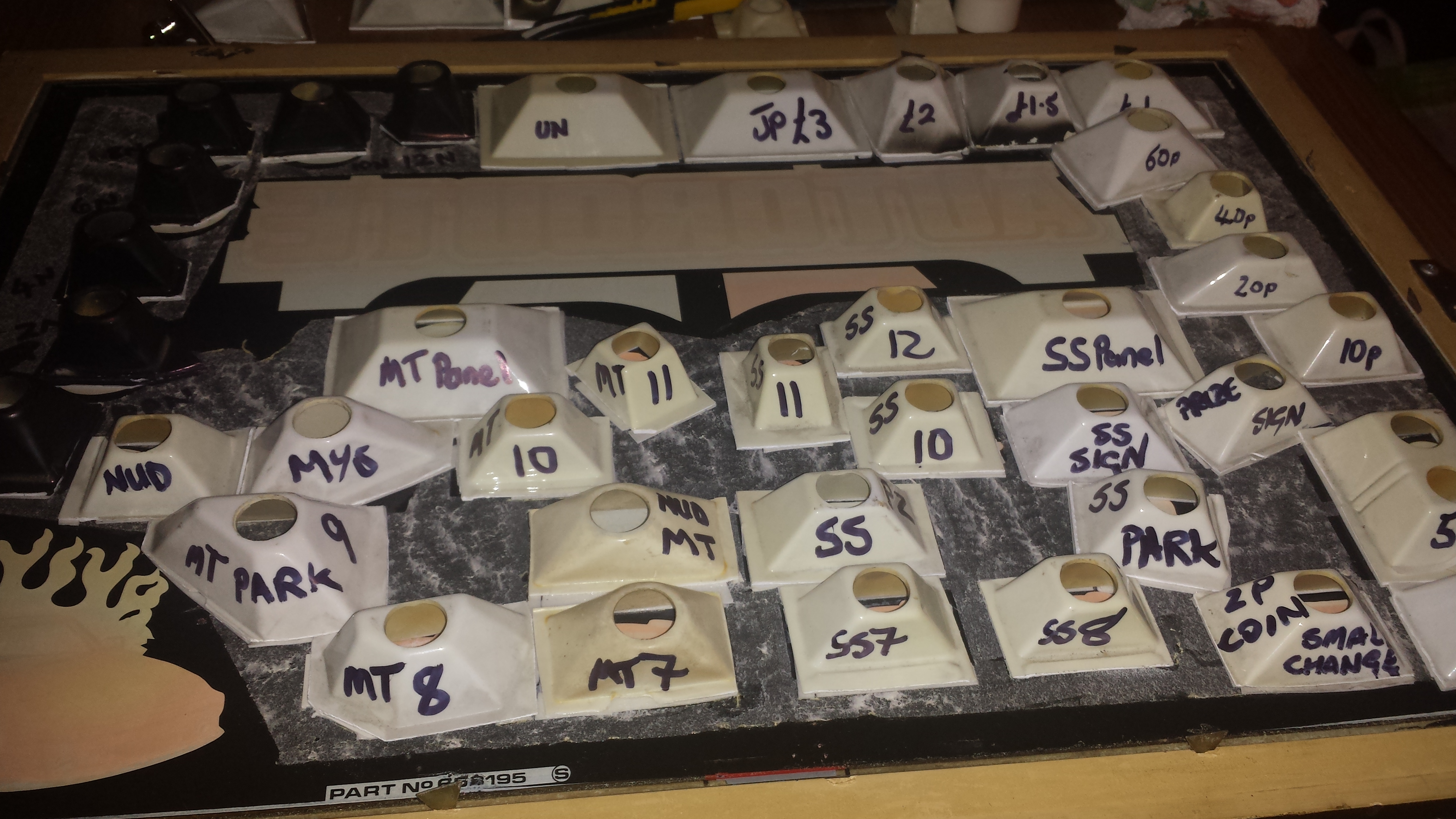 Each one gets a bit easier, I had a spare set of reel bands and program card given to me by my good friend Nick. He also gave me the diagram from his build, so it was just a case of getting and doing the lamp loom. The meters and switches were so similar, there was almost no modification. I touched up the frames and added new button decals for Cancel Re-route and Go Left, Go right which Jonno kindly did for me.