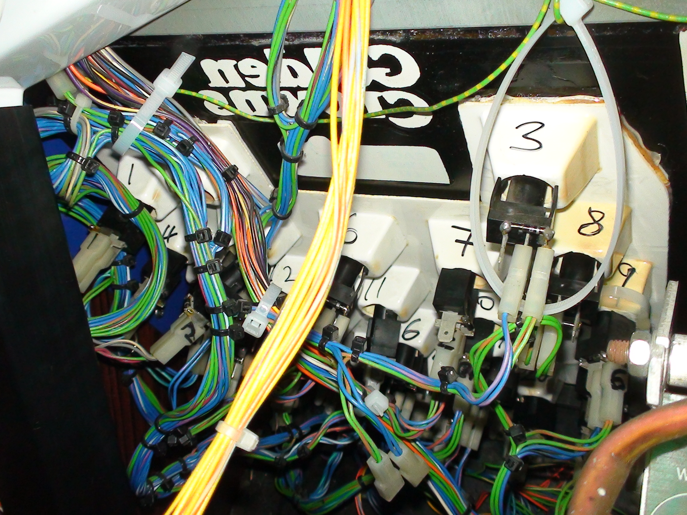 The mask was damaged and had to be repaired. The coin mechs were still on old money and we’re freed up using WD40, I put the manifold and pipes in the dishwasher and cleaned the inside of the machine. With the MPU3 and the bulbs replaced it was time for testing.