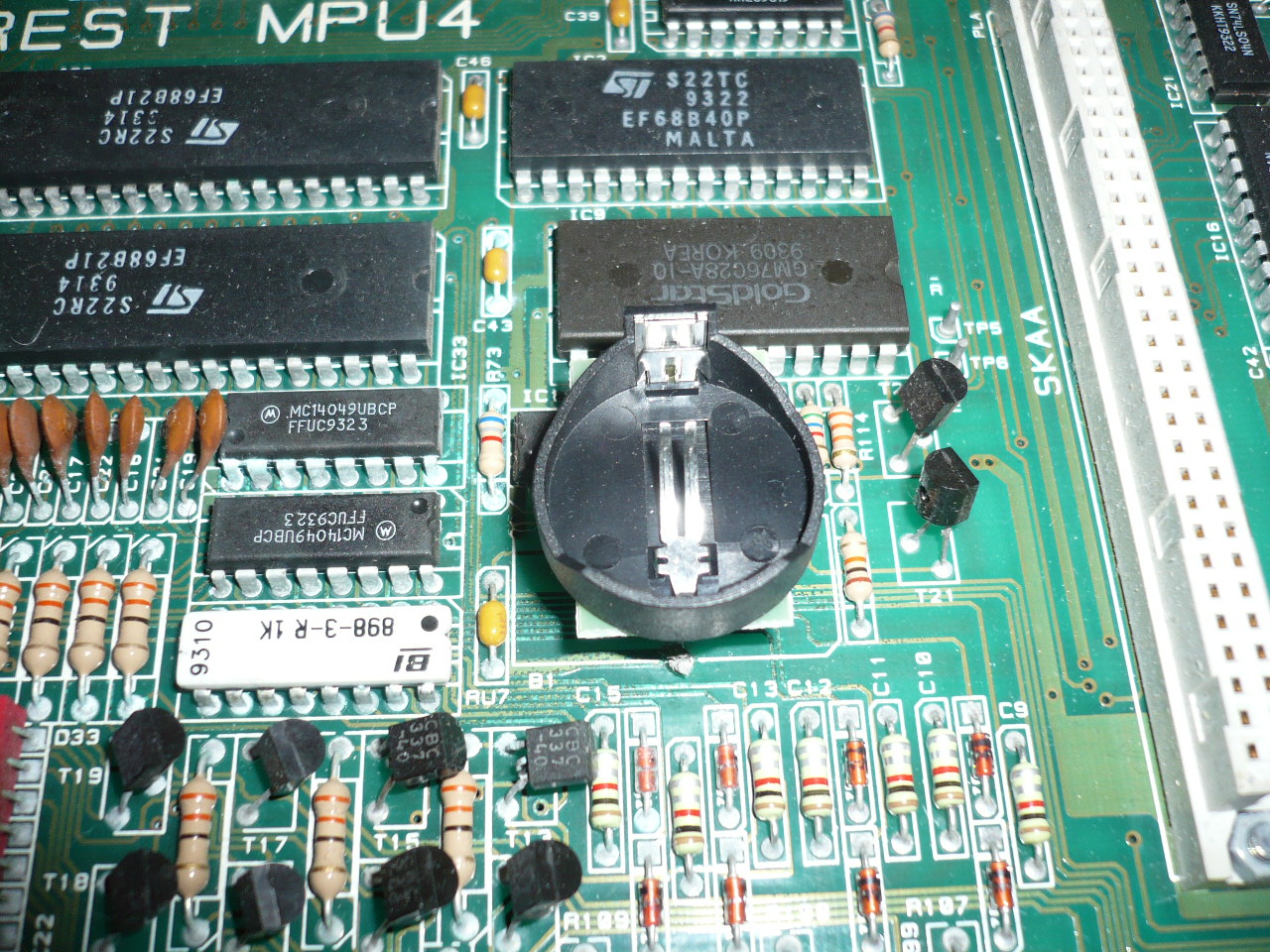 Very neat complete with blocking diode, this non-charging coincell mod will fit directly into the existing holes on an MPU4 or MPU4 board or any MPU that originally took a 2.4v Varta mempak battery. Estimated to last around the same as your PC CMOS battery. (several years at least)