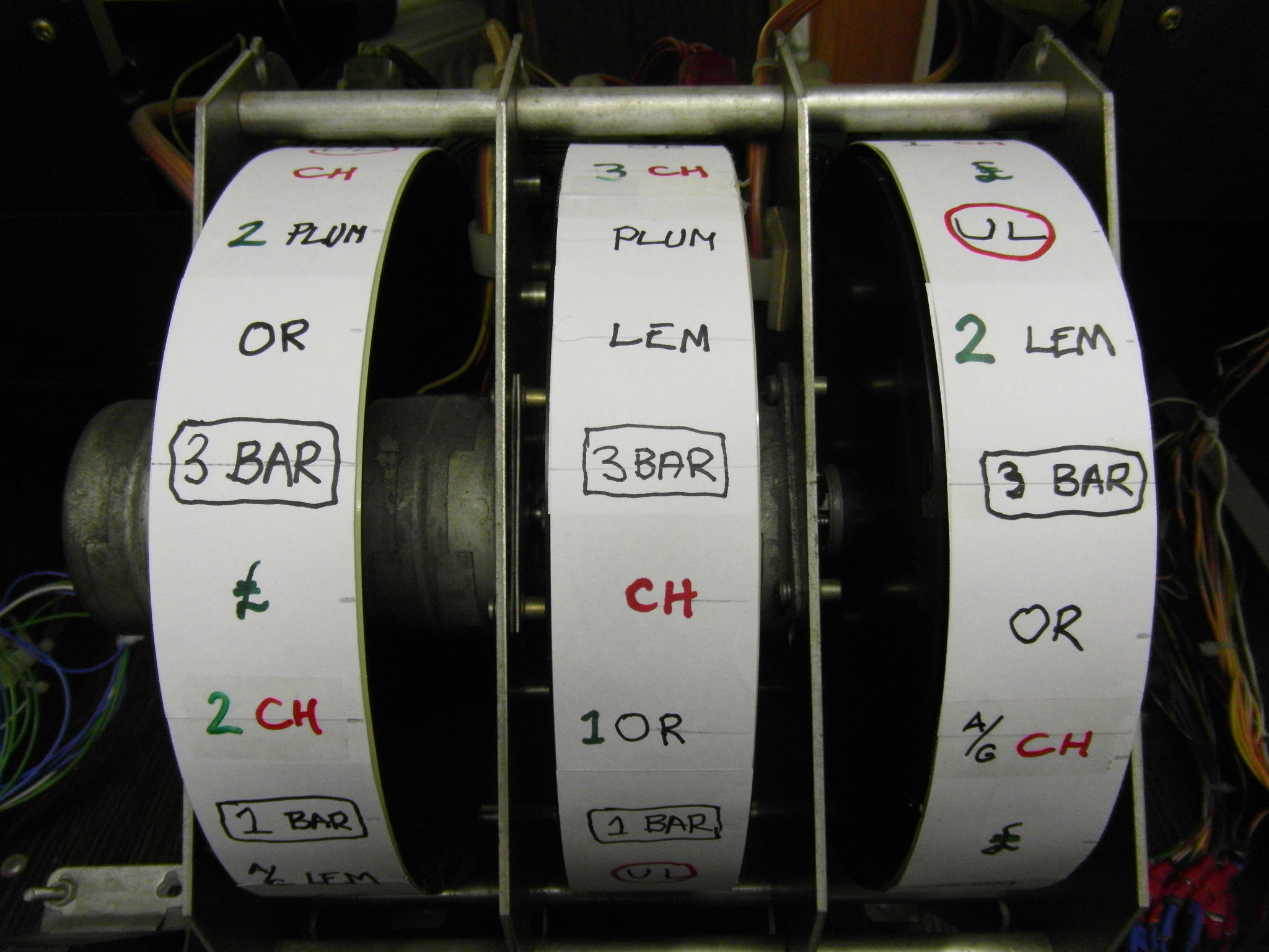 Make shift reel bands were created to be used for testing. Sometimes you just have to improvise in these situations. You can actually play the machine using these bands. (they did make me smile)